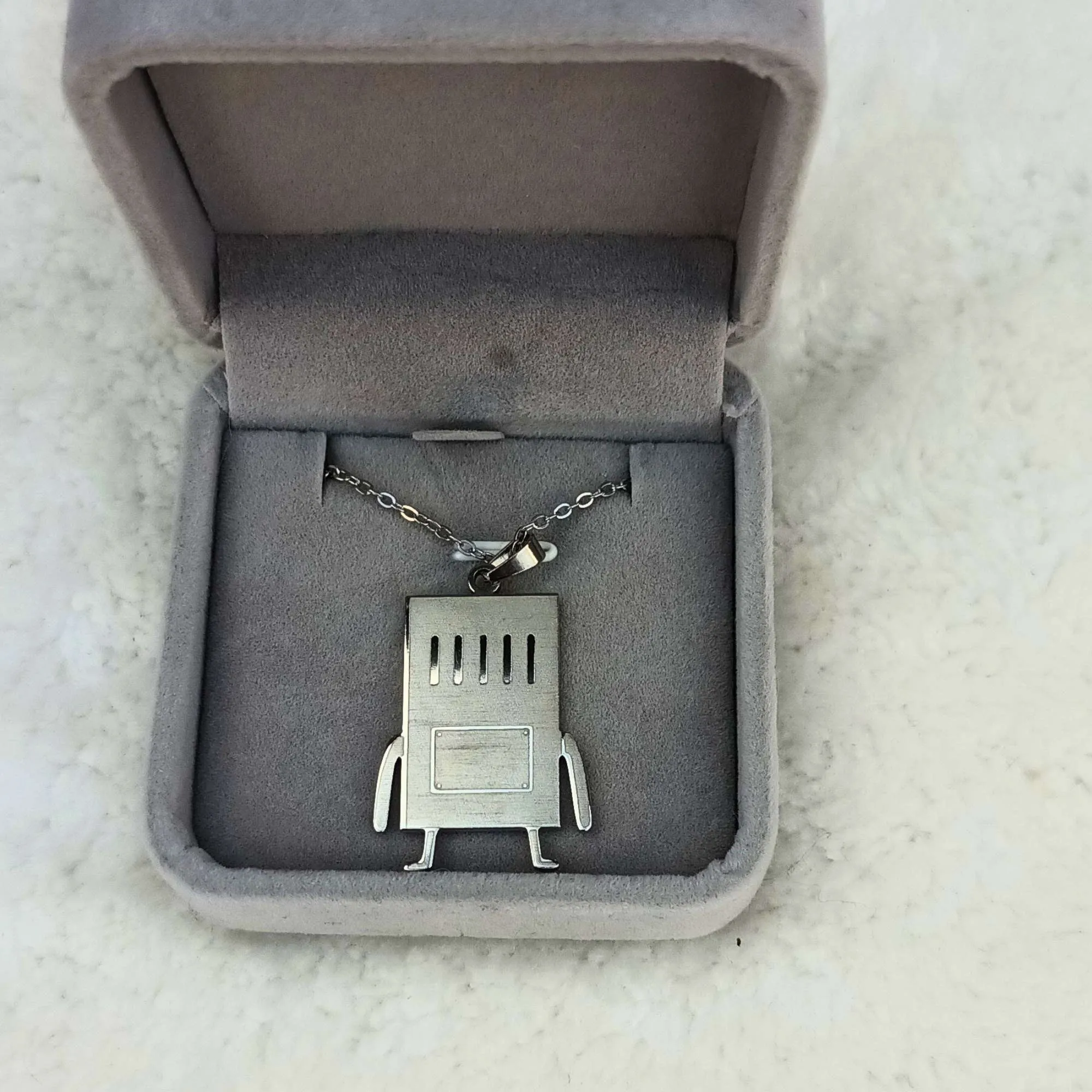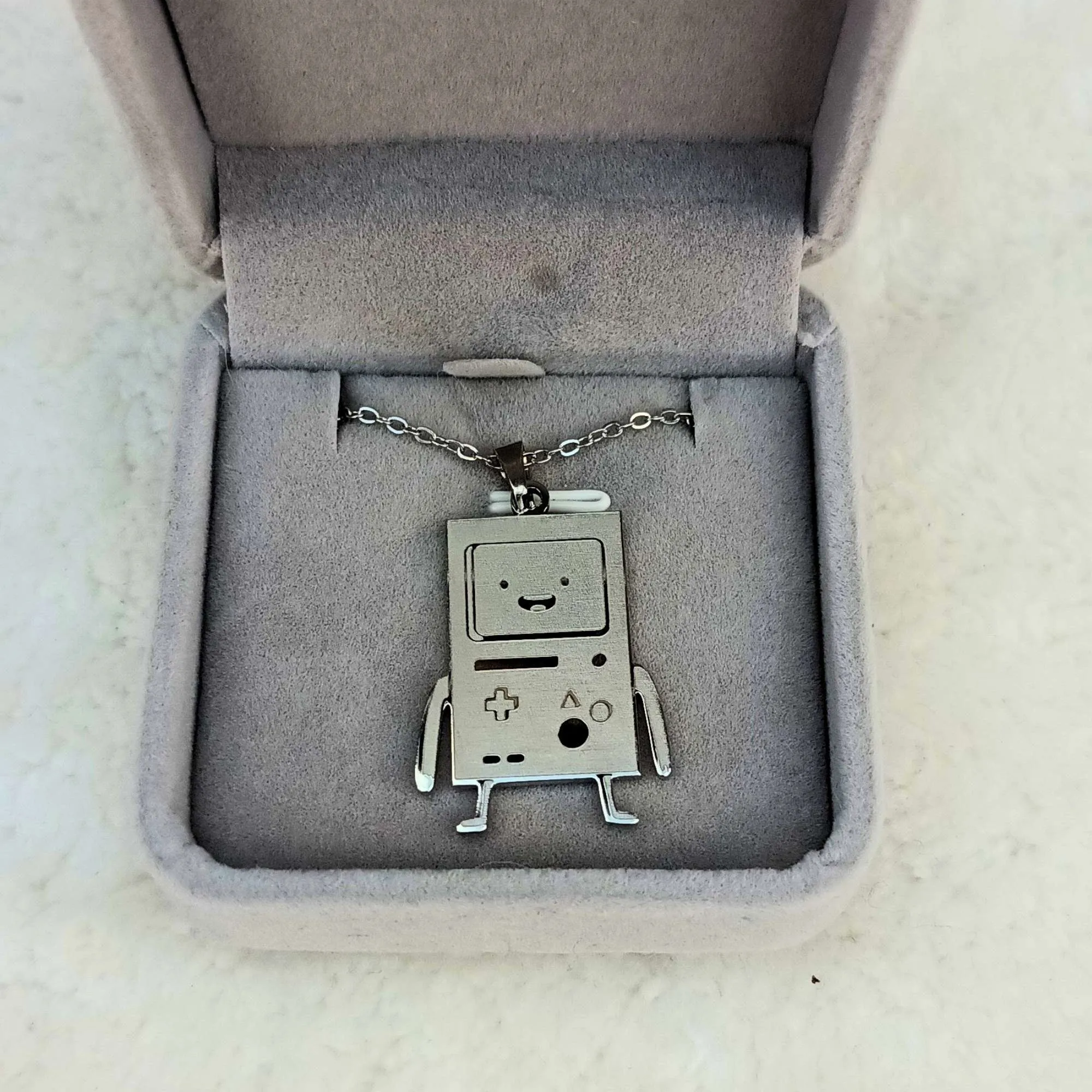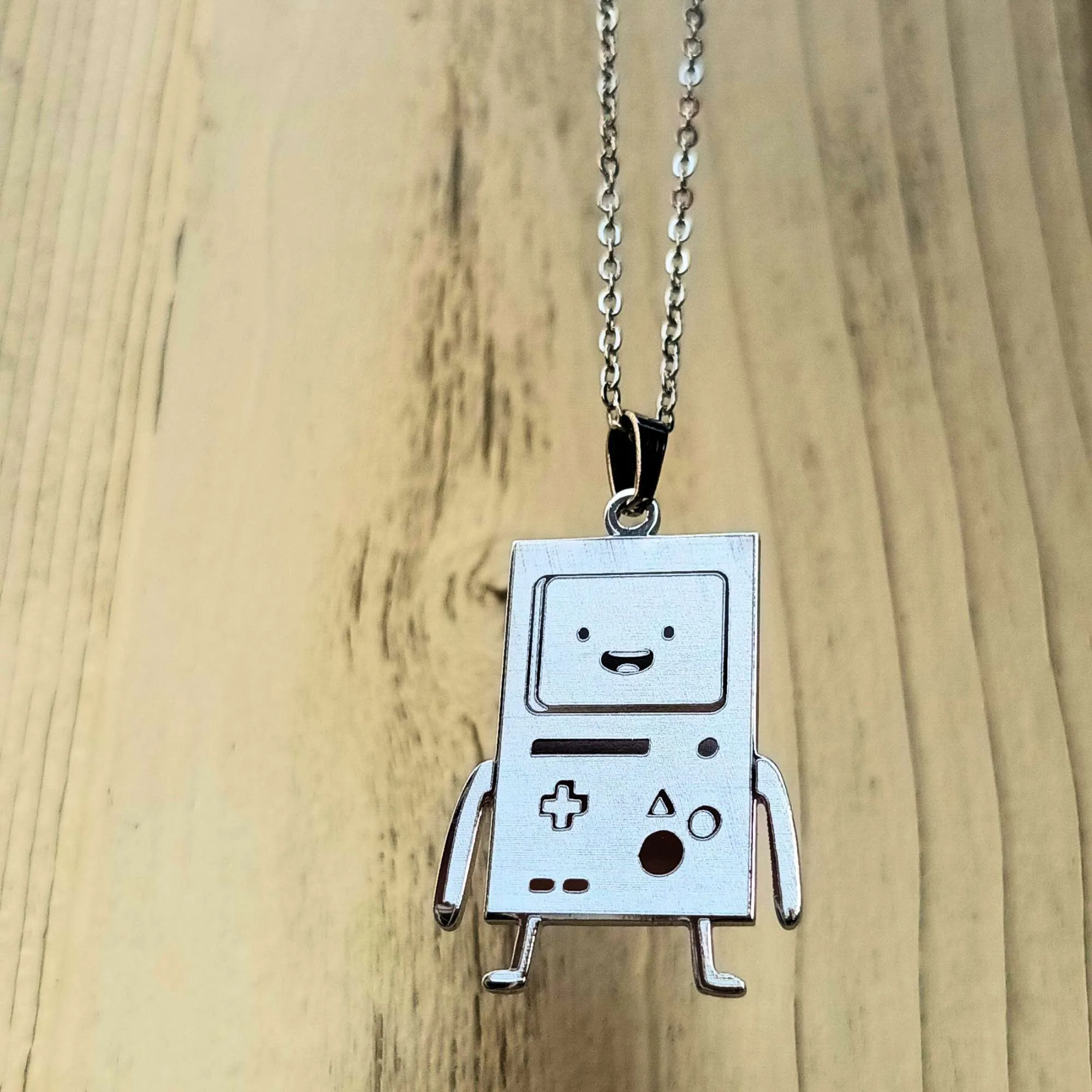 🎮 Calling all Adventure Time fans! This BMO pendant is a must-have for anyone who loves the quirky and lovable gaming console from the series. Crafted from high-quality stainless steel and available in gold or silver, this necklace features detailed engravings on both sides—BMO’s happy face on the front and console details on the back.