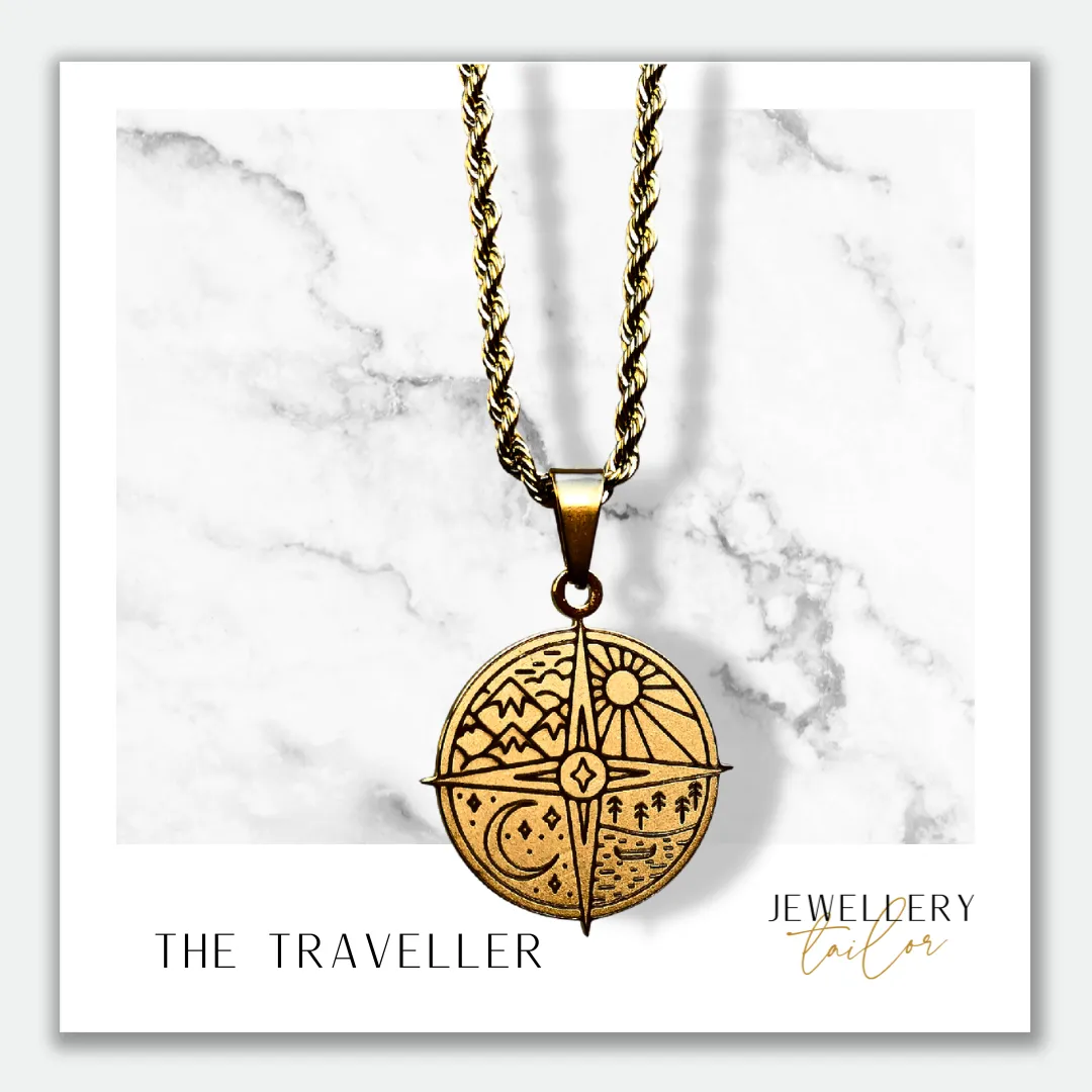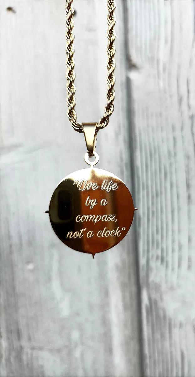 Keywords: compass pendant, travel jewelry, adventure necklace, inspirational quote pendant, custom engraved jewelry, travel gift, compass design necklace, gold travel pendant, silver compass jewelry, meaningful jewelry gift
