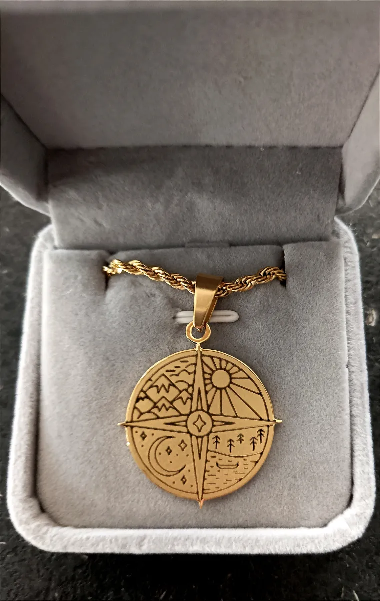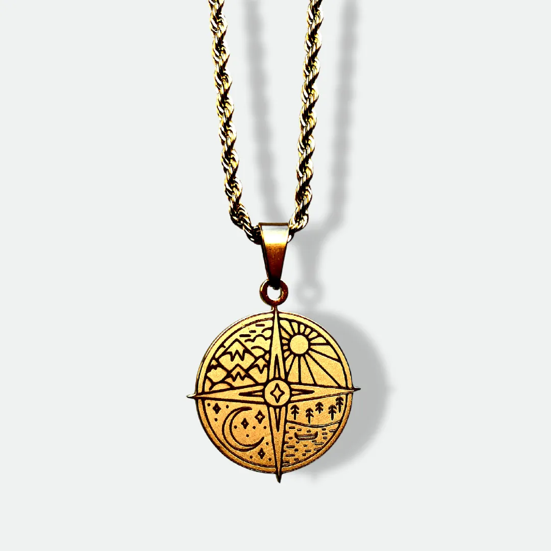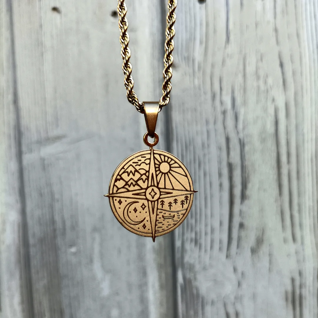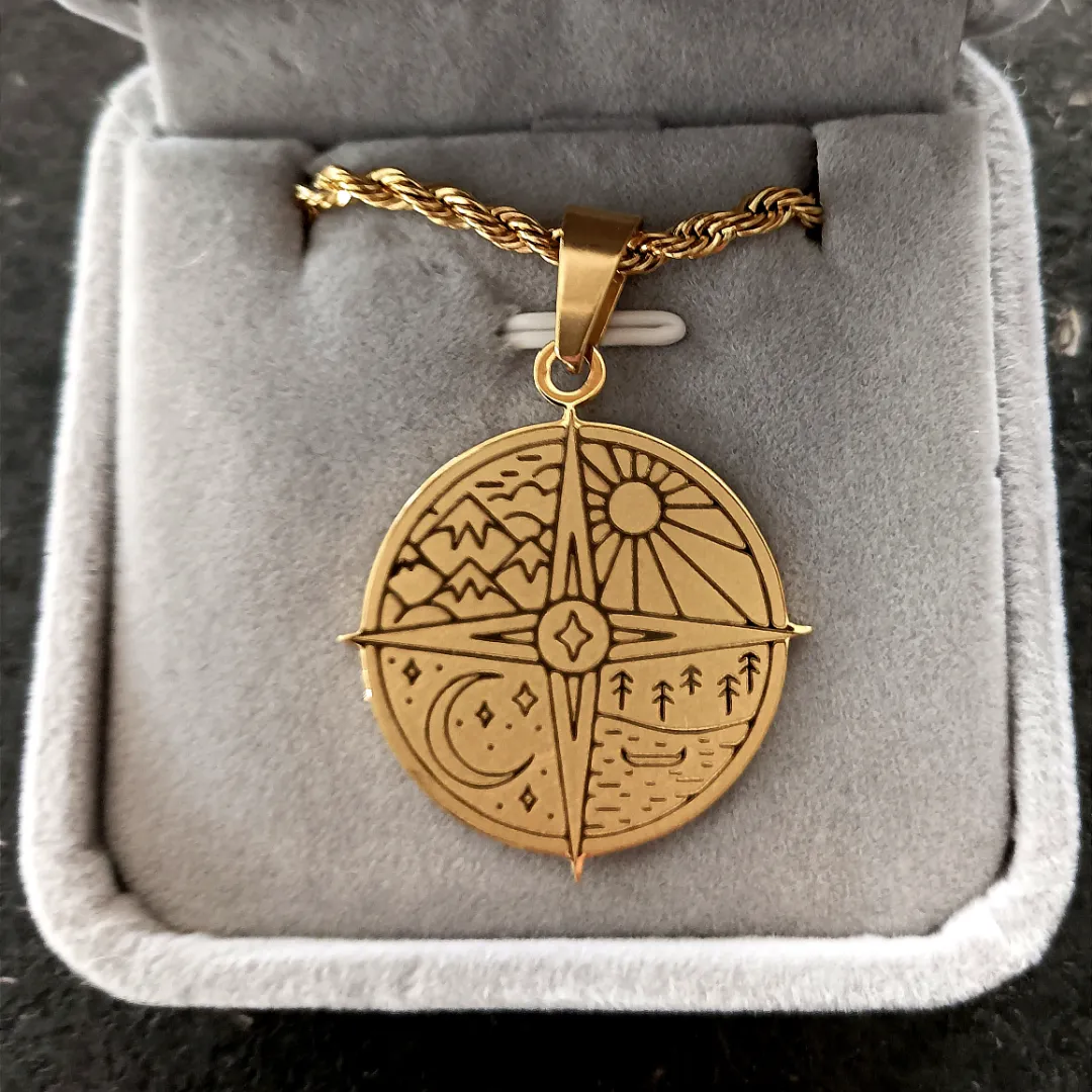 -20%High-quality 18k gold or silver-plated pendant featuring a compass design and custom engraving. Durable, sweat, and waterproof. Perfect for travelers and adventurers.