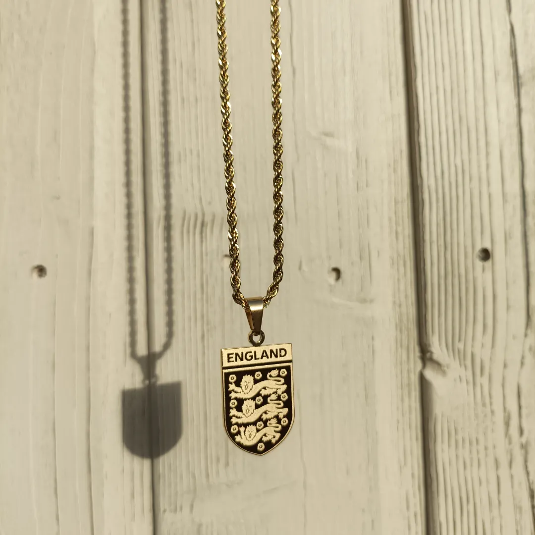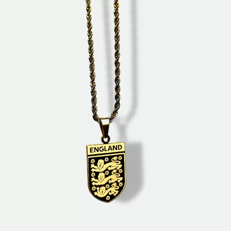 Crafted from 18k gold-plated materials, the England Pendant is designed for both style and durability. It is sweatproof and waterproof, ensuring that it remains a shining accessory whether worn daily or during special occasions. The detailed Three Lions crest captures the pride of English football, making it a perfect statement piece for all fans.