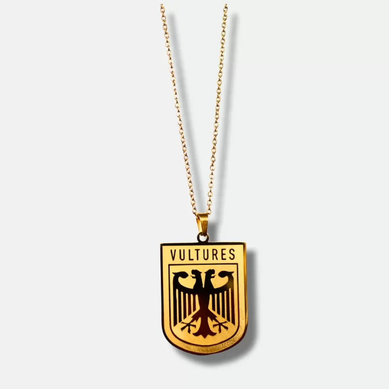 This pendant is available in 18k gold-plated or platinum-plated material, ensuring a luxurious and durable finish. It’s built to withstand daily wear, being both waterproof and sweatproof, making it perfect for everyday use. The bold vulture design on the front is finely engraved, making this a standout piece for any fan of Kanye West or Ty Dolla Sign.