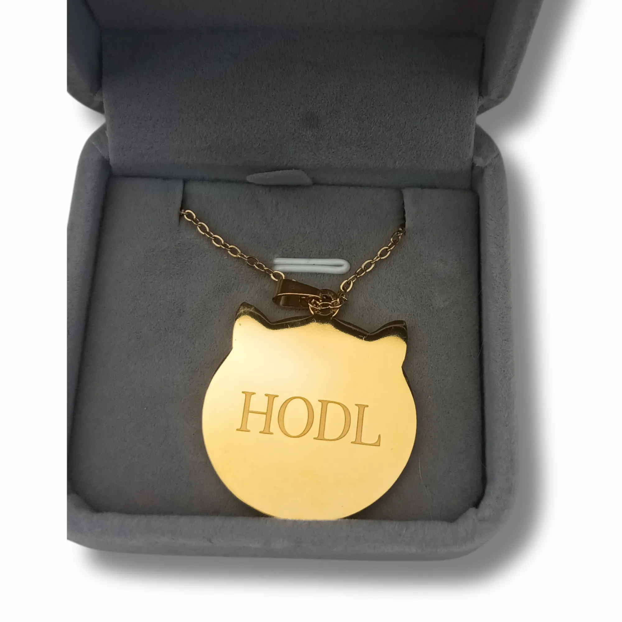 The ultimate crypto-inspired accessory for Shiba Inu (SHIB) investors and blockchain enthusiasts! This gold-plated stainless steel pendant features the Shiba Inu logo engraved on the front, symbolizing the SHIB cryptocurrency movement, and the word “HODL” on the back, a legendary crypto phrase meaning “Hold On for Dear Life.”