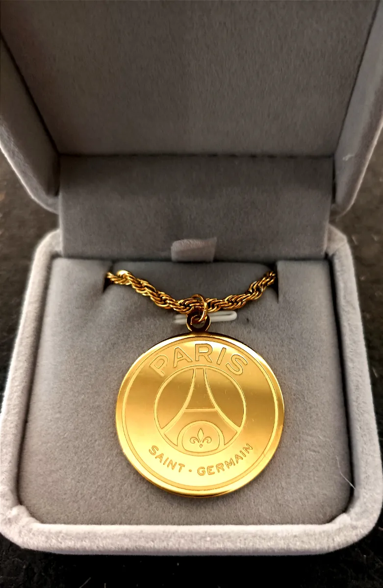 The Paris Saint-Germain Pendant is the perfect way to display your loyalty to PSG. Featuring the iconic PSG crest on the front and the motto “Le Parc Est À Nous” (The Park is Ours) engraved on the back, this pendant symbolizes the club’s unity and strength at Parc des Princes. Whether worn on match days or as part of your daily style, this pendant allows you to carry a piece of Paris with you everywhere.