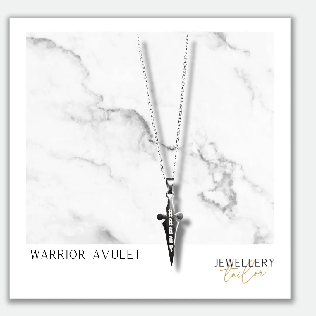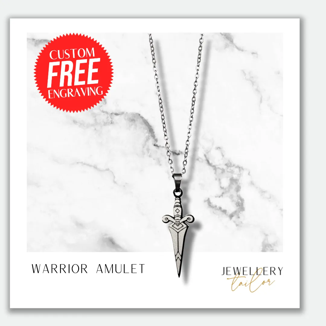 Embrace your inner warrior with this intricately designed personalized dagger pendant. Each pendant features a detailed dagger design and offers the option to engrave your own name or a meaningful word on the blade. Made from high-quality materials, this pendant is available in both silver and 18k gold plating, ensuring durability and long-lasting beauty. It is sweat and waterproof, making it suitable for daily wear or as a standout piece in your jewelry collection.