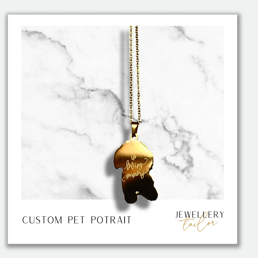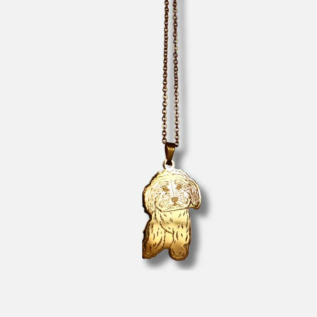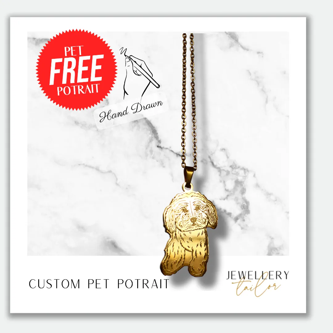 -22%High-quality silver or 18k gold-plated pendant featuring a personalized hand-drawn illustration of your dog and custom engraving. Durable, sweat, and waterproof. Perfect for pet lovers.