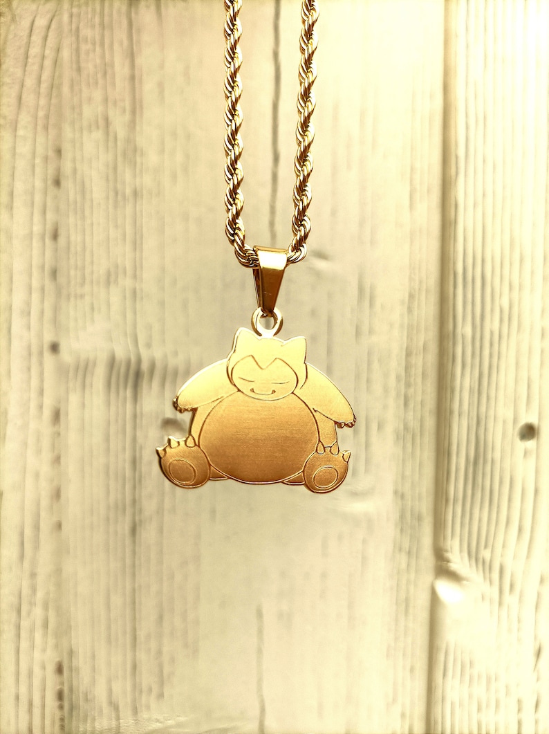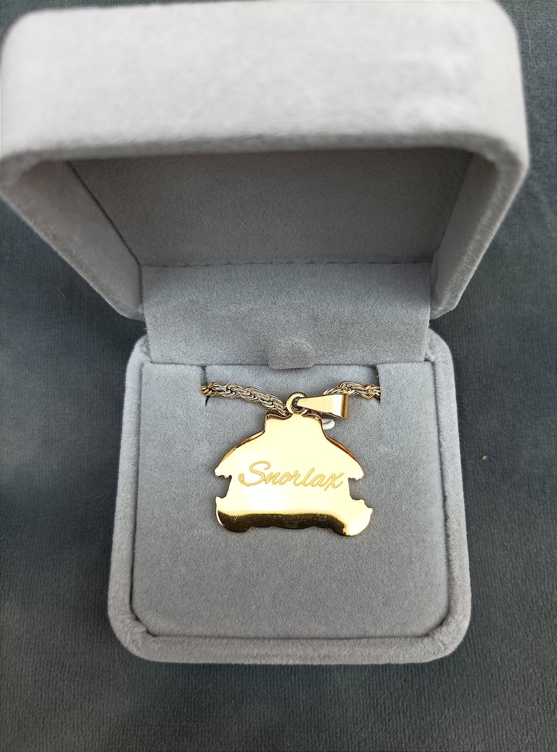 Embrace the laid-back, carefree energy of Snorlax with this stylish gold-plated pendant. Perfect for Pokémon fans, this pendant features a detailed engraving of Snorlax on the front, capturing the beloved character in all its sleepy charm. On the back, the pendant is engraved with the name “Snorlax”, making it an ideal accessory for true Pokémon enthusiasts who want to carry their love for Snorlax wherever they go.