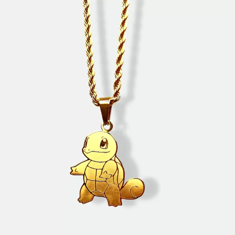 This pendant is made from high-quality 18k gold-plated stainless steel, offering a brilliant finish while ensuring lasting durability. Its waterproof and sweatproof design makes it ideal for everyday wear. Whether you’re a Pokémon collector or simply adore Squirtle, this pendant will bring a touch of Pokémon fun and nostalgia to your style.