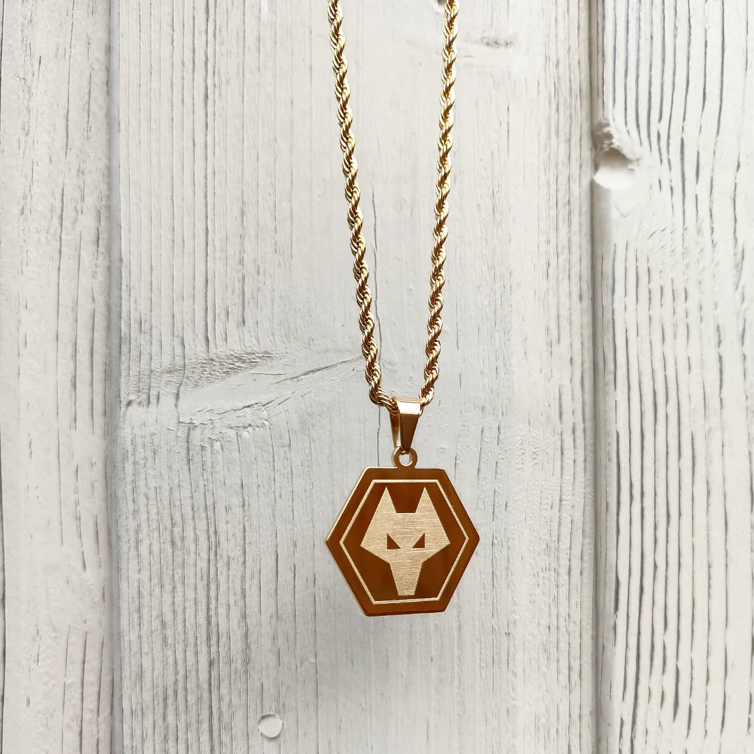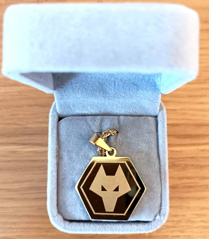 Show your Wolves pride with the Out of Darkness Cometh Light engraved pendant, featuring the Wolverhampton Wanderers crest. Made from 18k gold-plated material, itโ€™s sweatproof, waterproof, and customizable with free worldwide shipping.