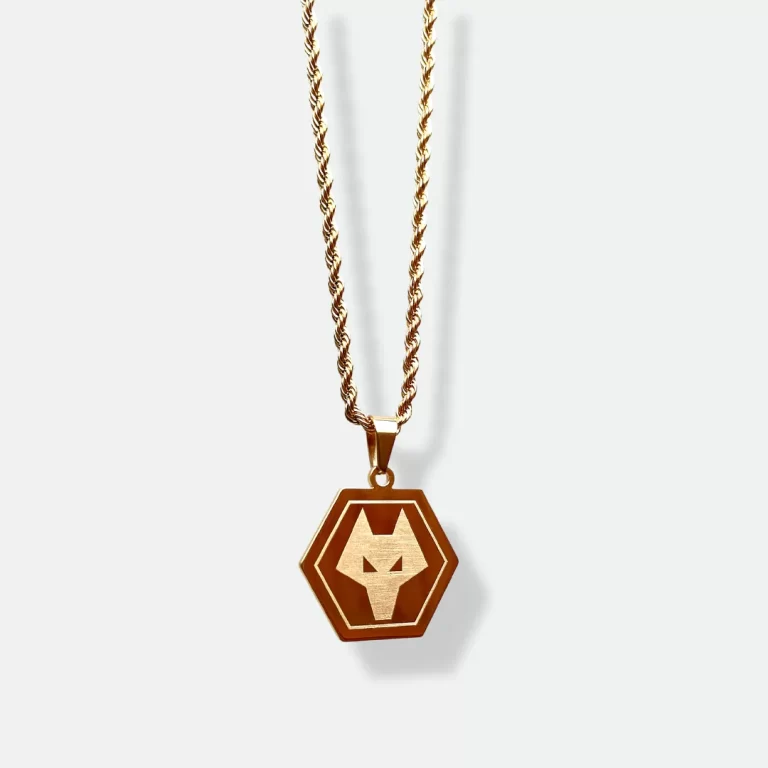 Made from 18k gold-plated material, the Wolverhampton Wanderers Pendant offers both elegance and durability. It is sweatproof and waterproof, making it suitable for daily wear, even during the most intense matches. The intricate detailing of the Wolves crest highlights the clubโ€™s storied history and iconic colors, making this pendant a must-have for any die-hard fan.